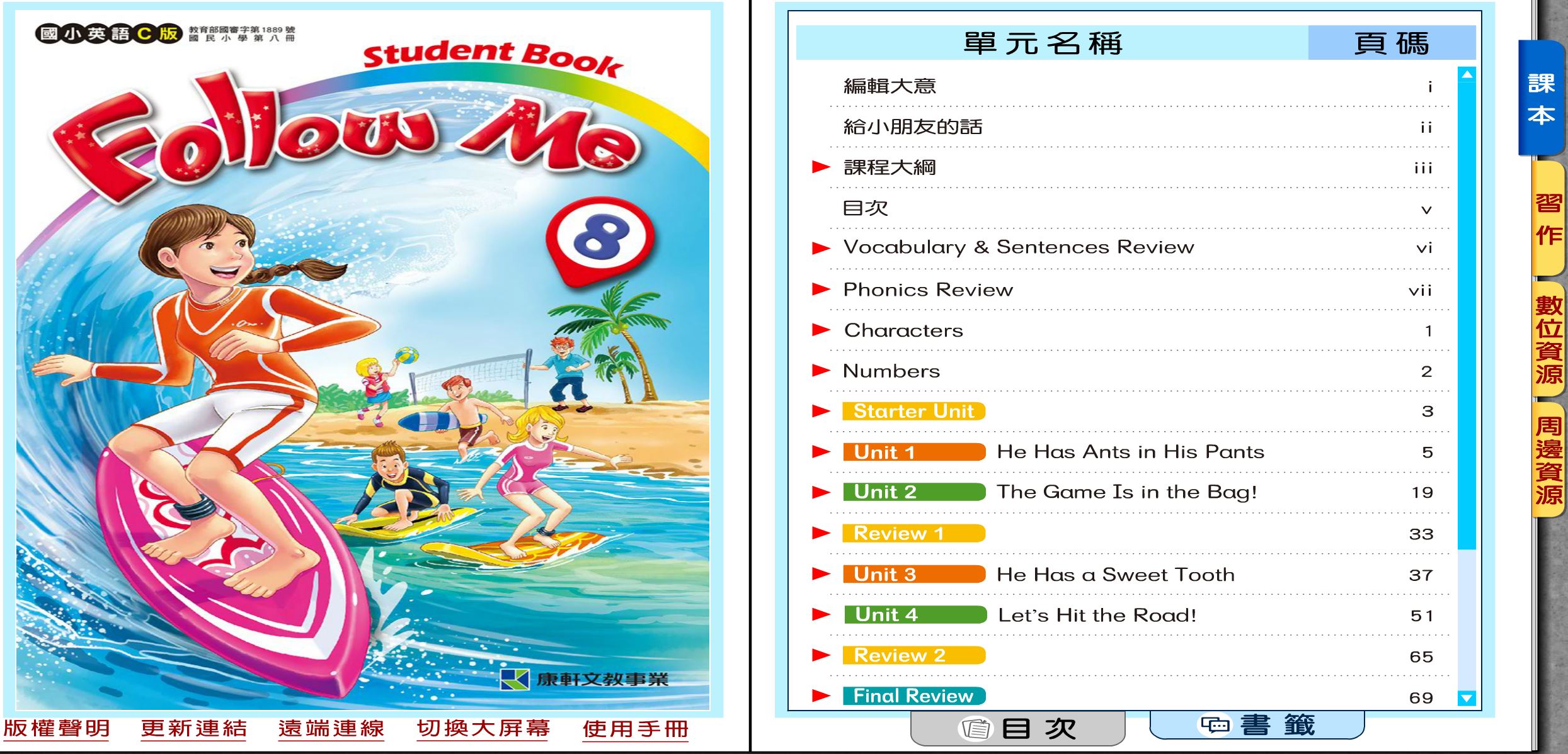 DAE0296--112學年下學期 國小 康軒版 英語電子書 Follow Me 第8冊(含課本、習作含解答) 教學光碟