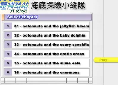 片名:BBC 英語原聲動畫 the Octonauts 海底探險小縱隊 31-36集 英語發音(幼兒教學)(適用任何家用DVD播放機超清晰畫面超長超值享受)(DVD版)(此片售150元)